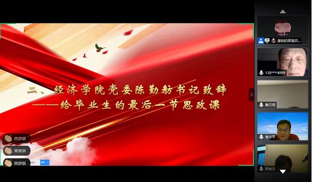 (图2:经济学院党委陈勤舫书记给毕业生上最后一节思政课)