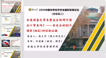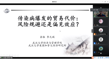 余振教授进行了题目为《传染病爆发的贸易代价:风险规避还是偏见效应?》的演讲。余教授提到,传染病对人们健康和正常经贸活动产生的巨大威胁受到了人民广泛的关注,但是较少有人关注到传染病爆发对该国出口贸易的影响机制。他在演讲中提出三个假说:第一,传染病爆发对贸易的影响存在长期性;第二,传染病爆发对贸易的影响存在收入的异质性;第三,传染病爆发对贸易的影响存在语言、文化、政治距离的异质性。该研究主要得到以下结论:传染病爆发对于疫情国出口具有显著的负向影响,并且集中在对高收入国家的出口和对语言、文化、政治距离较远国家的出口。他还指出,传染病爆发对于疫情国的进口也有显著的负面影响。他提出国家一定要重视疫情对出口的负面影响和疫情再爆发的风险管理,加快推进国家治理体系和治理能力现代化。