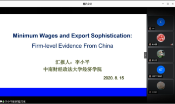 下半场主题演讲的最后一位发言人是李小平教授。他作了题为《Minimum Wages and Export Sophistication: Firm-level Evidence from China》的主题演讲。他提出,产品复杂度会影响一国的经济增长模式和经济波动程度,因此了解一国产品复杂度变化的因素很重要。他使用中国企业微观数据,发现最低工资与出口复杂度之间存在显著的正向相关性。并且,国内企业和劳动密集型企业的出口复杂度对最低工资变化更为敏感,金融约束度最高与最低的企业更容易受当地最低工资的影响,最低工资标准的提高对进口开发度高的部门企业的出口复杂度影响更大。他还认为中国企业出口复杂度的提升不仅仅是由于资本投资的增加,还因为企业对个人教育支出的增加。同时,最低工资标准提高导致企业进口的规模更大,生产的产品种类更多,这些也促进了出口复杂度的提升。
