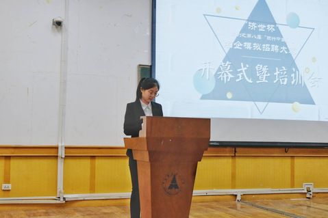 活动伊始,主持人对本届“职行中南”名企模拟招聘大赛进行了赛事流程与活动宗旨的简要介绍,整个比赛由开幕式暨培训会、初赛、复赛、决赛四个部分组成。初赛采用测试的形式,通过EPI综合能力测评和个人简历制作两个方面进行测试。复赛采用无领导小组讨论形式,对同学们的团队协作能力、沟通表达能力、随机应变能力进行考验,通过层层选拔的同学将进入决赛环节。紧接着,主持人对本次活动的培训老师——曲悲岩老师进行了隆重介绍。