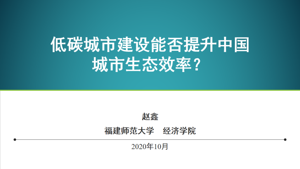 福建师范大学经济学院的马晓伟硕士向大会做了题为《低碳城市建设能否提升中国城市生态效率?》的报告。马晓伟硕士所报告论文在对已有文献的梳理过程中,提出如下几点假设:低碳城市试点政策作为一项环境规制政策工具,满足波特“创新补偿”理论,兼具“减排效应”和“增长效应”,有利于提升城市的生态效率水平;低碳城市试点政策兼具“倒逼”机制下的技术创新效应和自身的技术创新任务,均有利于经济发展、降低环境污染,进而提升生态效率;低碳城市试点政策兼具“倒逼”机制下的产业结构效应和自身的产业结构优化任务,均有利于经济发展、降低环境污染,进而提升生态效率;低碳城市试点政策兼具“倒逼”机制下的能源强度效应和自身的能源结构优化任务,均有利于经济发展、降低环境污染,进而提升生态效率。结合相关数据进行了实证分析,根据分析结果给出了如下结论与政策建议:低碳城市建设在充分发挥技术创新力量的同时,应继续挖掘产业结构优化、能源结构优化路径;立足于城市资源依赖程度异质性分析结果,针对资源型城市和非资源城市,需要实施差异化的低碳城市试点政策强度;立足于城市规模异质性分析结果,在低碳城市试点政策实施过程中充分发挥规模效应和集聚效应提升生态效率的作用。