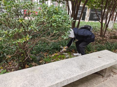 此次绿色校园行活动与以往的活动形式不同,小组成员们通过在首义校区内捡拾垃圾来促进校园环境的改善。中午12点,小组成员们来到了各自负责的区域,捡拾校园内的垃圾。虽然校园内有人员定期打扫,但草坪、小路上仍有烟头、纸屑等垃圾,某些区域的花坛角落内还存在很多白色垃圾。如果这些垃圾长时间得不到清理,将会对我们的校园环境造成不良影响。小组成员们秉持“不怕脏、不怕苦、不怕累”的精神,将沿途的废纸、饮料瓶、包装袋、香烟头等垃圾捡起并放入了自备的塑料袋中。尽管天气寒冷,但小组成员们不惧冷风,认真捡拾垃圾,为绿色校园贡献了自己的一份力量。