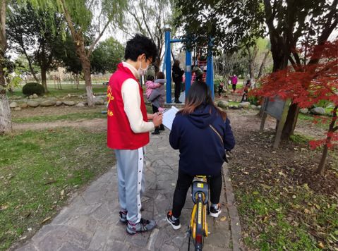 (图1:志愿者礼貌邀请民众参与问卷调查)