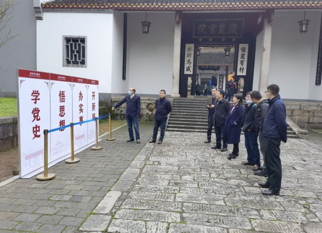 交流会结束后,在学校开展“中南财经政法大学党史学习教育”活动的大背景下,院党委书记陈勤舫带领调研团队到岳麓书院参观“岳麓书院与实事求是思想路线”研究成果展示,听取关于“党的实事求是思想路线策源地”专题讲解。岳麓书院,始创于公元976年,是中国文化史上孕育思想、创新学术的基地,更是悠久中国高等教育发展历史的缩影、世界高等教育史上罕见的延续千年办学的最古老学府之一。1917年,怀揣实业报国梦想的湖南公立工业专门学校校长宾步程,手书“实事求是”悬挂于岳麓书院讲堂,将其作为校训,引导学生从事实出发,崇尚科学、追求真理。毛泽东寓居岳麓书院期间,深受实事求是这一学风的濡染熏陶,并不断内化为其认知方式、价值追求和实践品格。在长期的革命实践中,实事求是得到广泛实践和充分检验,逐渐发展为党的思想路线,成为中央党校和全国各级党校的校训,成为党的优良传统和作风,是党领导人民取得各项事业不断胜利的重要法宝。