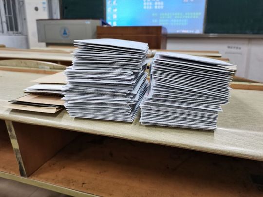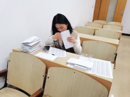 4月1日中午,活动小组成员在两个校区分别设置了摆点收信处,收集志愿者们在活动前期写给复读生的暖心书信,而在收信过程中,活动小组成员也再次对书信的内容进行审核,坚决杜绝质量低的书信。志愿者们书写的信件大部分都能给复读生起到激励作用,活动小组成员也为志愿者们的认真细心所感动。在收齐全部书信后,活动小组成员会将志愿者们的暖心书信一同寄送到复读生的手中,给予他们关怀与鼓励。