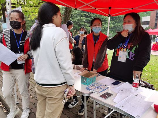 在活动前一天小组成员们在志行天下的志愿者群中招募了十名志愿者,并为他们讲解了有关注意事项、进行了简单培训。4月8号1245志愿者们来到首义广场集合,小组成员们也开始支起帐篷、摆好桌子并贴上活动的海报。13时志愿者们两人一组出发前往各自负责的区域,向同学们发放传单、宣传有关HPV的知识并邀请其来到摊点处参与活动与此同时,摊点处也吸引了许多同学经院志协女孩请听好活动如火如荼的开展起来