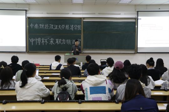 (学生记者宁园 摄影蔡子淼)为帮助同学们感受并适应招聘面试的环境,提高个人应聘能力,经济学院“中博杯”求职力挑战赛开幕式暨培训会顺利开展。本次活动共设两场,分别于4月10日14:30在首义校区30号楼303教室、4月11日14:30在南湖校区文澜111室举办。此次活动由经济学院分团委学生会创业实践部主办,创业实践部学员赵甲宁同学、吴郭磊同学担任主持人,并邀请到华为宣讲师刘华柱老师担任主讲人,经济学院各级本科生到场参加。