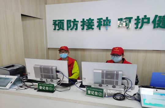短暂培训后,活动小组成员便正式投入志愿服务中了:两人在柜台处录入信息,其余成员穿着“小红袍”引导病人完成整个疫苗注射流程。但是志愿服务过程并不一帆风顺,活动小组成员发现,目前距离上月第一针注射刚好1个月,一些病人在清楚本日只注射第一针的情况下,仍前往医院注射疫苗,发现不能注射第二针后,强硬要求活动小组成员拿出国家发布文件解释原因。最后在成员们的耐心疏导细心解释病人们解决了心中的疑惑,活动小组成员在服务过程中也一步步踏上了正轨。