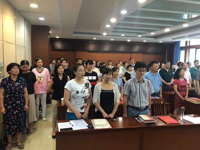 随后,会议进行至第四项——经济学院全体师生党员重温入党誓词,由经济学院组织员罗慧敏同志领誓。