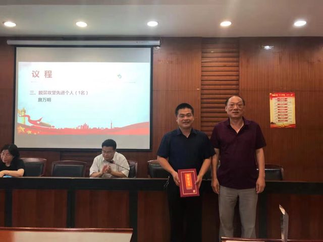 (经济学院党委书记陈勤舫为“脱贫攻坚先进个人”詹万明颁奖)