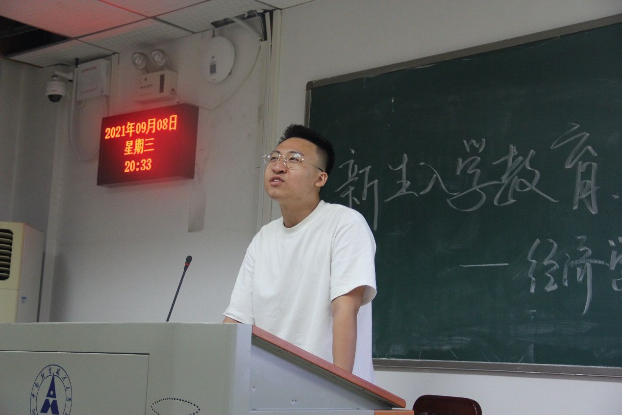 踏着九月的风,经济学院迎来了2021级研究生新同学。为了帮助新生更快适应研究生生活,进入人生的新阶段,9月8日晚7点,经济学院在文添楼503举办了2021级研究生新生入学教育大会。出席会议的有经济学院研究生辅导员岳明泽,研究生会执行主席罗厾尧、熊保维、张瀚文,2021级全体硕士、博士研究生新生,本次会议由岳明泽老师主持。