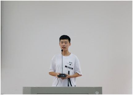 首先,由经济学院分团委副书记肖嘉程同学发言。肖嘉程同学介绍了本次迎新宣讲会的流程与经济学院各学生组织的概况,并鼓励2021级全体本科生积极加入各学生组织,参与学院各项活动,同时祝愿同学们能够在经济学院这个大家庭中收获知识、经验和友谊。