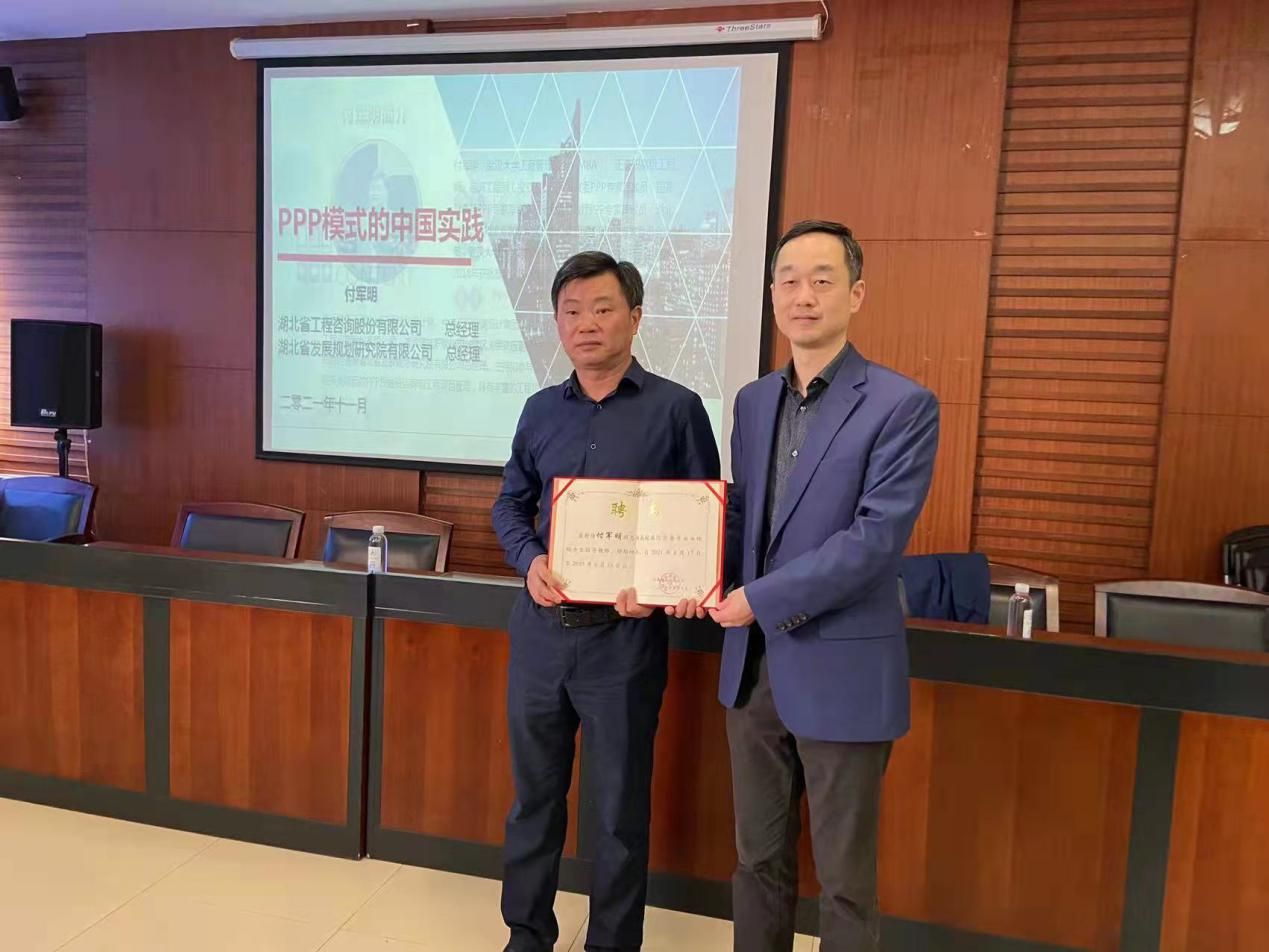 20211131500,经济学院特邀湖北省工程咨询股份有限公司总经理、湖北省发展规划研究院有限公司总经理付军明先生,为同学们作了一场题为“政府与社会资本合作(ppp)模式在中国的实践与发展”的讲座,让同学们受益匪浅。同时,学院聘请付军明先生作为国际商务专业校外硕士生导师,在社会实践方面对国际商务学子提供指导和帮助。