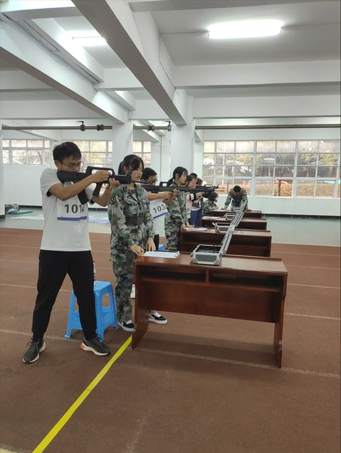 目光如炬直中靶心。作为2021年新加入运动会的项目射击成为万众瞩目的焦点。在女子射击立姿无依托的比赛中我院健儿张诗颖同学目光坚毅、弹无虚发射落一枚银牌;在卧姿后立姿混合接力的比赛中,我院队伍轻取621.6环,以第二名的佳绩为我院再添荣光。