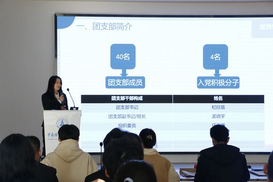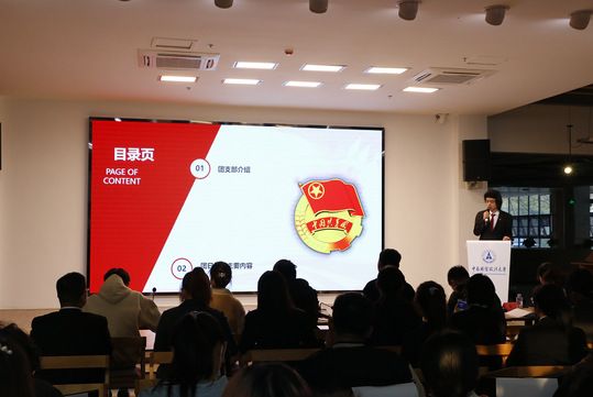 随后,进入团日活动设计展示与答辩环节。主持人介绍大赛赛制和比赛流程后,各班团支书依次上台展示。其中,经济2001班团支部“青年大学习”的主题让评委和观众们眼前一亮;经济2101班团支部的“合唱一首红歌”活动想法独特,令人印象深刻。