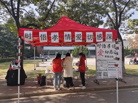 1128日,中南财经政法大学南湖校区和华中师范大学的义卖依旧如火如荼地开展着,尽管是义卖的最后一天,但志愿者们却热情丝毫不减,志愿者们积极地向路人介绍着孝感活动。无论是一份薄薄的报纸,还是一张小小的明信片,它们都承载着同学们对老人最真诚的关心和祝福。在干事们的有序组织、志愿者们的热情号召和同学们的积极响应之下,本次活动共筹集到了善款两万余元,十天的线上义卖活动和三天的线下义卖活动至此画上了一个圆满的句号。