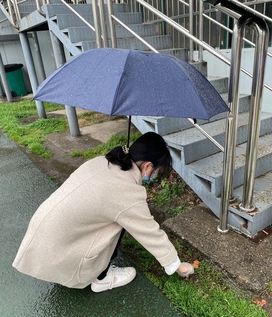 在活动进行时,天气由晴转雨,志愿者们打着伞坚持完成清理,不怕苦不怕累,发扬 “学雷锋”的志愿服务精神,认真清扫落叶纸屑,将杂乱的自行车、电动车摆放整齐,为美丽校园创建贡献力量。