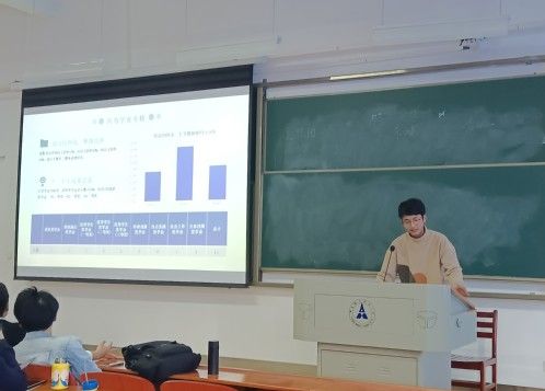 其次,作为专业分流之后成立的新班级委员会,国商2001班史溢娇同学在班级概况及班委组成、班级班规制定、本学习班级规划及班级展望四个部分进行了分享,指出了班级在高代课程挂科率偏高的问题,并给出了详细的方案以期提高本班成绩。