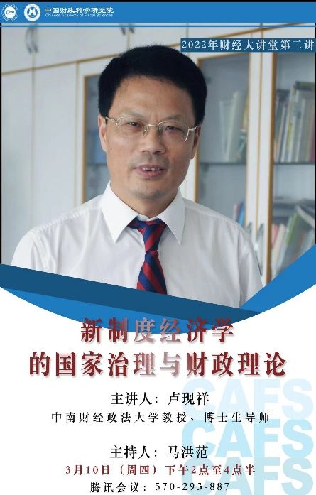 (通讯员 王素素)3月10日下午,我院卢现祥教授受中国财政科学研究院邀请,为其师生开展了一场以“新制度经济学的国家治理与财政理论”为主题的学术讲座。