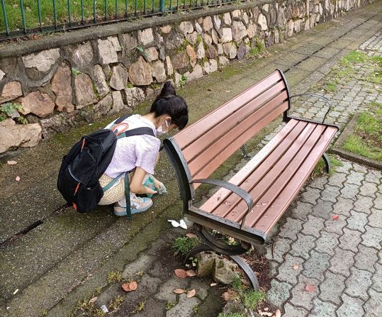 (图1:志愿者清理地面垃圾)