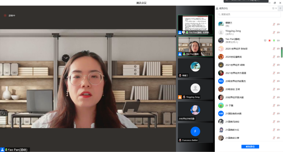 会议伊始,住持人曾盈盈副教授简要介绍本次参会嘉宾,并对意大利罗马一大经济学院各位参会老师表示热烈欢迎,意大利罗马第一大学经济学院院长Fabrizio D'Ascenzo非常高兴参与此次会议,并表示本次会议是我院与意大利罗马第一大学经济学院合作的良好开端。我院杨波教授对意大利罗马第一大学经济学院院长能够参与此次研讨会表示热烈欢迎,并希望两院能够继续保持良好的合作。