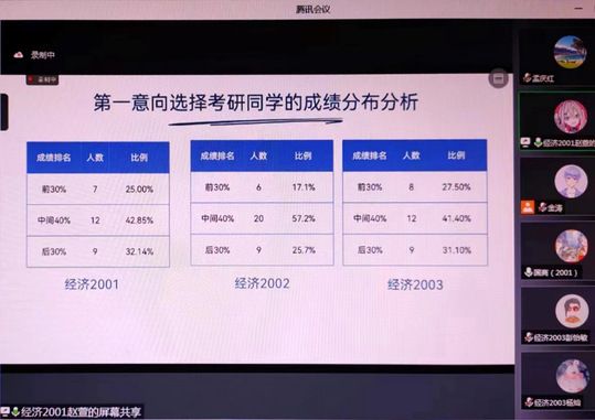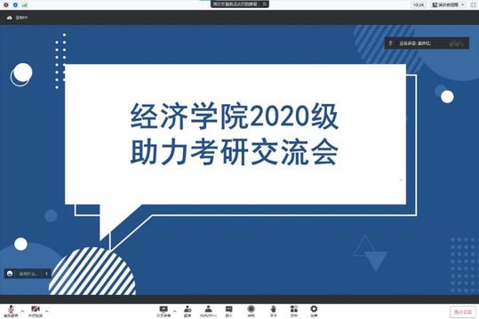 为切实做好经济学院2020级本科生学业规划工作,引导学生根据自身情况科学合理制定未来规划和选择毕业去向,经济学院于7月3日晚19:30在线上召开了2020“助力考研”交流会。经济学院2020级全体本科生参加了本次会议,经济2002班班长金涛同学主持会议见图1