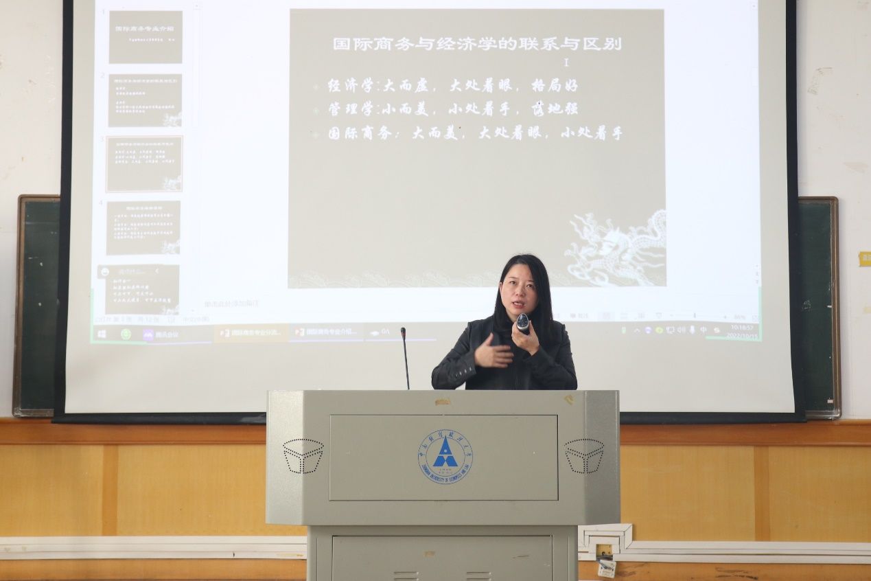 会议伊始,由吴姗姗副主任向大家简单介绍出席本次会议的优秀教师以及国际商务专业大致情况,引起同学们对该专业的初步认识。