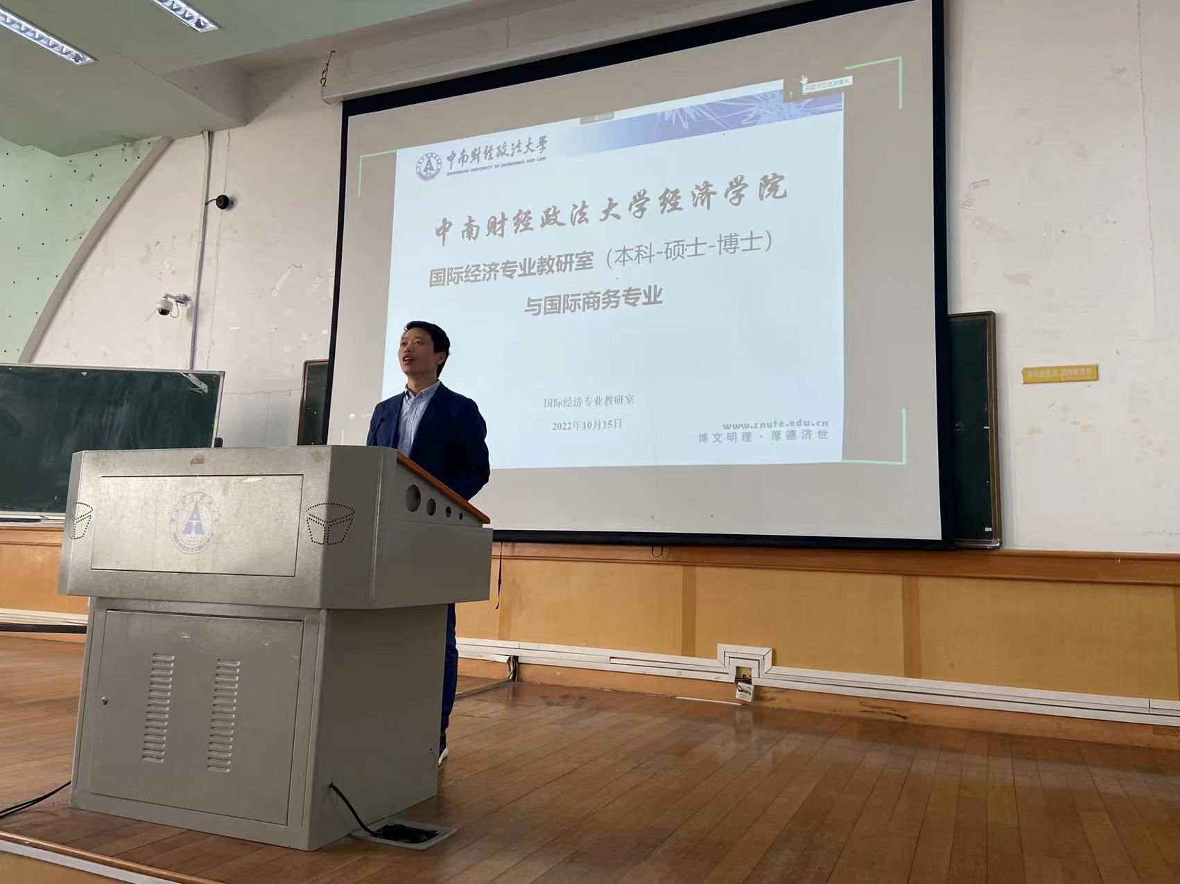 (学生记者田怡可 摄影郭宇航)为使经济学院2021级本科生更好地了解经济学和国际商务专业的基本情况以及未来发展方向,学院2021级国际商务专业分流推介会于10月15日上午在文澜310室顺利举行。出席会议的有国际经济学系潘安主任、国际经济学系吴姗姗副主任、国际经济学教研室李小克主任、国际经济学系佘群芝老师、世界经济教研室谭理主任、世界经济教研室黄赛男老师、人口、资源与环境经济学教研室杨柳青青老师和全体经济大类的同学。