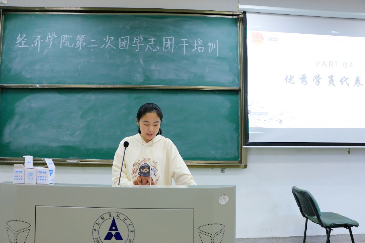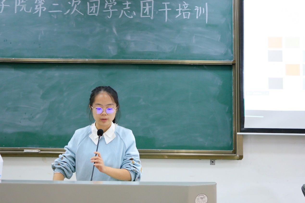 外联部副部长黎倚萍同学在优秀学员代表发言中分享了举办活动的经验教训,并表示团学志大家庭要在互相学习、互相帮助的氛围中共同进步。