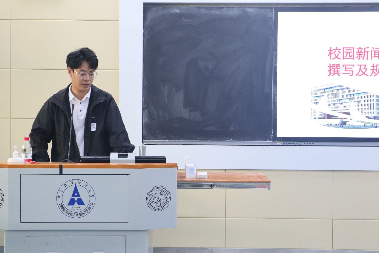 高聪老师从自身经验出发,为同学们阐述了团学工作中宣传工作的重要性,细致地讲述了撰写新闻稿的规范,指出了团学宣传工作中的要求以及一些常见问题。在场同学认真听讲,勤写笔记,紧跟高老师的讲述积极学习。