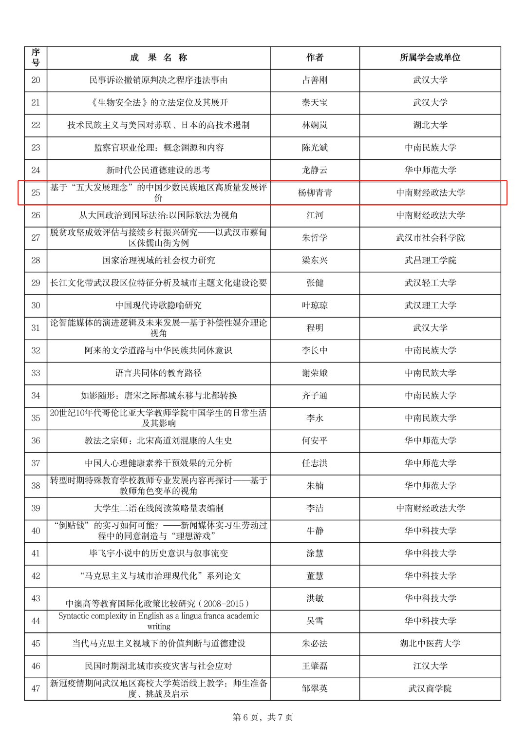 近日,武汉市社会科学奖励工作办公室公示“武汉市第十八次社会科学优秀成果奖拟获奖成果”,经过严格的评审程序,共评出等次奖165项。其中,我院邹进文教授荣获论文一等奖,李小平教授荣获著作二等奖,杨波教授、杨柳青青副教授荣获论文三等奖。