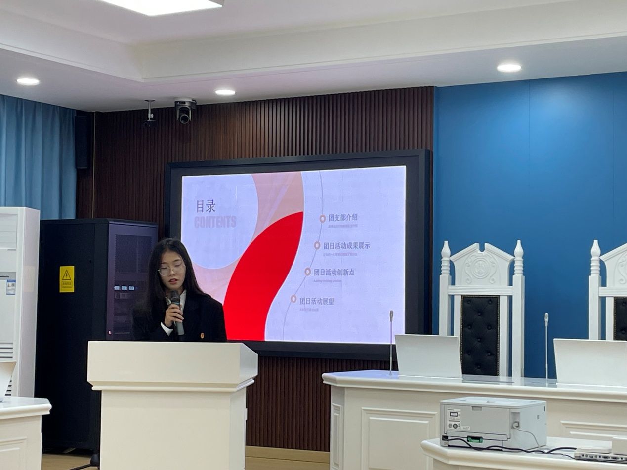大赛伊始,全体成员起立,奏唱团歌,现场气氛得到充分调动。展示与答辩环节中,南湖、首义两会场团支书为大家展示本班团日活动特色,同时评委们对其点评,团支书们答辩过程尽显支部风采。