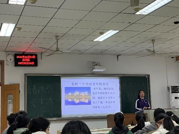 (通讯员:田鹏程)224日上午,经济2203班以“青春践行二十大”为主题,在文泽101教室举行了新学期第一次主题班会,辅导员周琼老师和班级导师李珊珊老师与同学们进行了面对面交流。