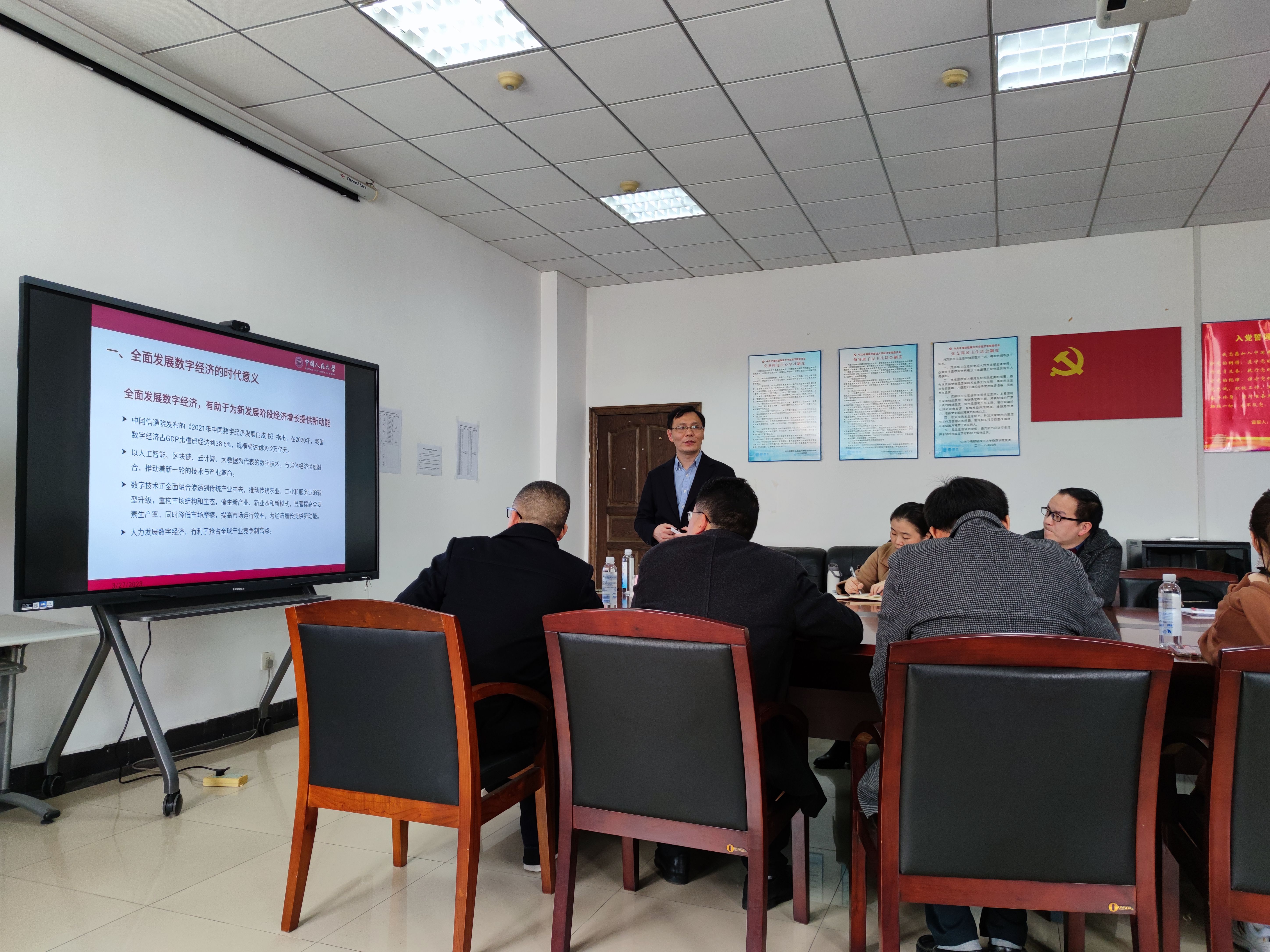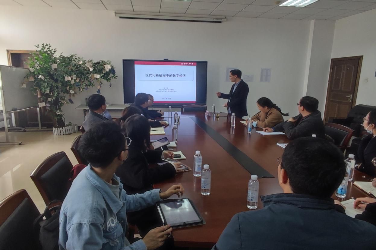 3月27日下午,数字经济与数字贸易名家讲坛第2期学术交流会在文泉楼南207会议室成功举办。中国人民大学李三希教授应我院数字经济系、数字经济与数字贸易研究中心、高质量发展研究中心邀请,以“现代化新征程中的数字经济”为主题,分享了中国数字经济发展的时代意义、现状与基本经验、优势与挑战等系列前沿问题。本期名家讲坛由经济学院院长李小平教授主持,经济学院杨祖义教授、李小克副教授、马强文博士、王许亮博士等青年教师,以及经济学院的博士生、硕士生等20余人参会。