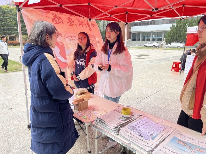 325日,活动率先于中南财经政法大学首义校区开展。经院志协的干事们和志愿者们依据排班提前到达首义广场集合,在进行了简短的培训之后前往各自负责的区域进行宣传。干事们带着志愿者,身穿红色的马甲,带着物资,穿梭在校园各个地方,始终热情洋溢、真挚诚恳地向同学们介绍孝感活动背后的故事与意义,不少同学都被这背后的情怀所打动,纷纷表示愿意为帮助孝感市季店乡福利院的老人献出绵薄之力。有不少同学被挂在固定摊位处的海报所吸引,摊点处的干事和志愿者对孝感活动有着充分的了解,主动积极地向同学们介绍活动并鼓励大家献爱心。经过志愿者们一天的努力,首义校区当天的活动取得了一定成功。
