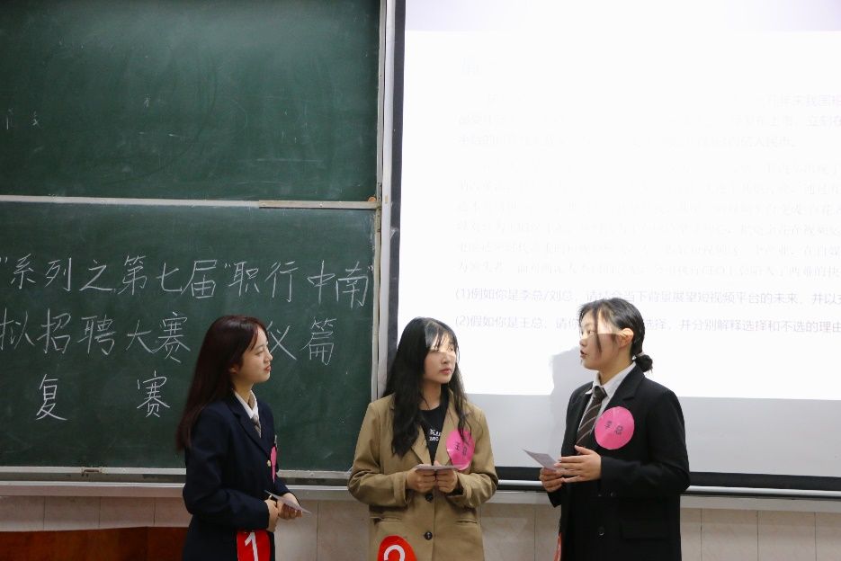复赛分为个人简历制作和小组情景模拟两个环节,共有六组选手参加竞争。每组选手轮流上台展示情景模拟,以此展现选手在职场中的礼仪素养、问题解决能力和表达能力,并检验他们的团队协作能力和创新思维。