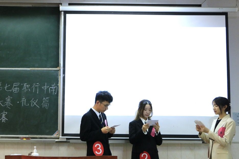 (学生记者谢旭萍 摄影曾昊)逐鹿中南,礼仪当先,为了让同学们更好地了解和掌握职场礼仪, 切合国家对人才培养的需要,“济世杯”系列之第七届“职行中南”名企模拟招聘大赛•礼仪篇复赛于2023年4月15日下午在中南财经政法大学首义校区文翰302室顺利举行。