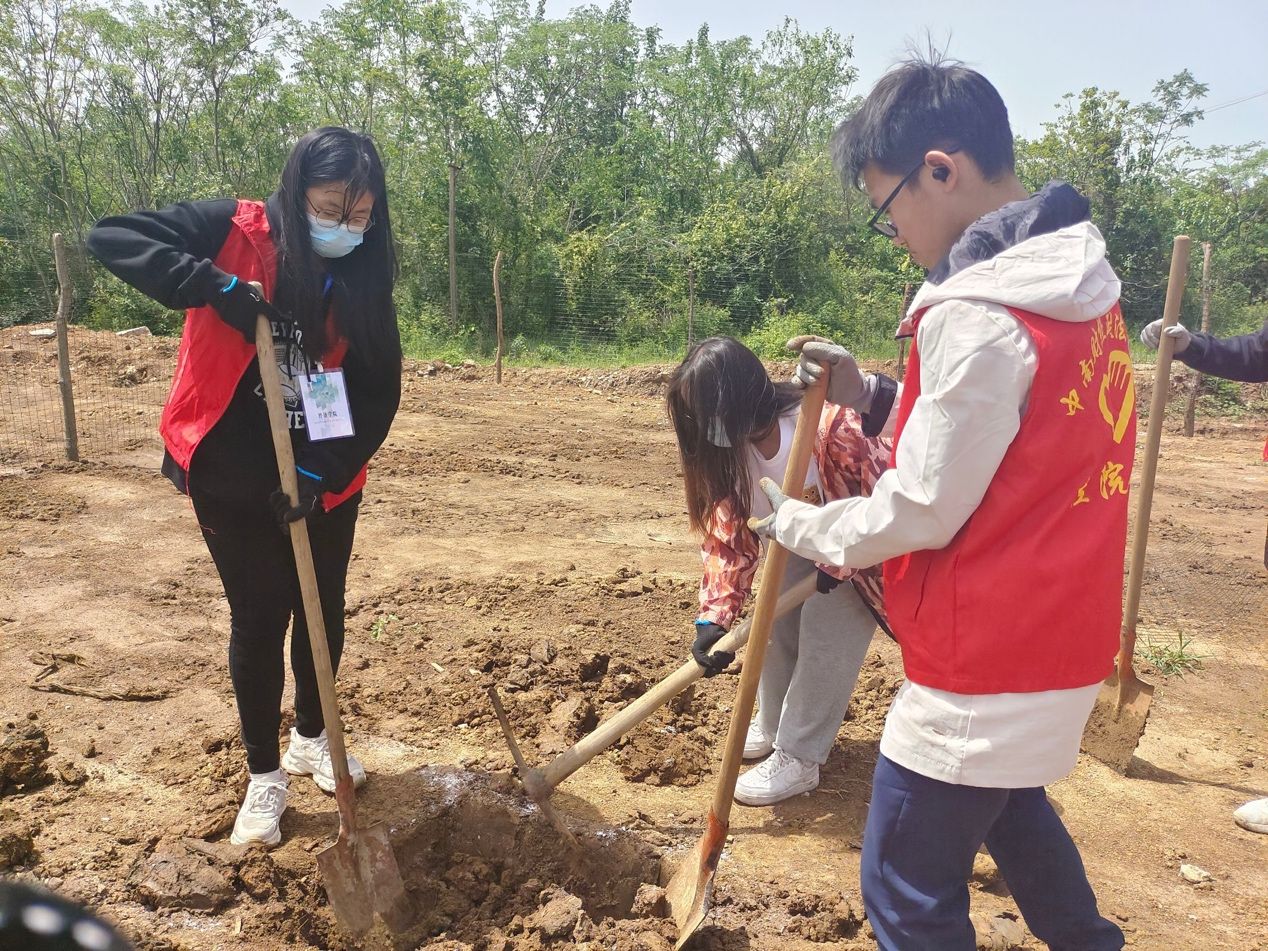 下午的工作主要是施肥种树,志愿者们拿着铁锹,施肥后一起填土,踩实浇水,现场热火朝天,大家干劲十足,枇杷、三红蜜柚、红灯樱桃、冬枣……看着一颗颗小树扎根在地,所有人都期待几年后绿树成荫的景象。很快,志愿者们便完成了果树的栽种工作。