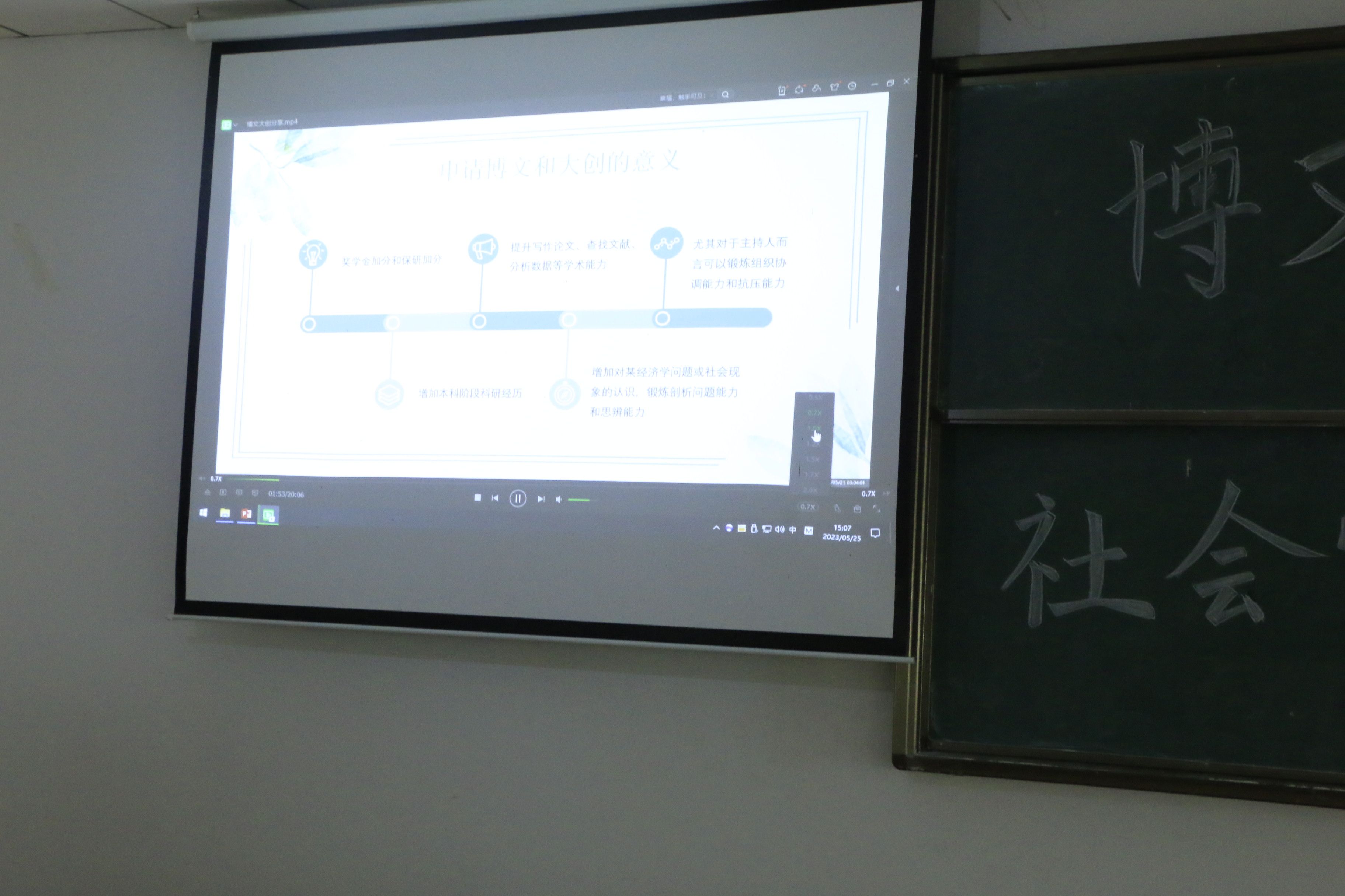 (学生记者陈静怡 摄影许茹雪)为加深2022级本科生对博文杯、大学生创业创新训练计划(以下简称“大创”)、社会实践等活动的了解,提高其科研创新能力,鼓励其积极开展科学创新研究,经济学院博文大创社会实践指导会于525日下午3点在首义校区文泽楼303教室举办。本次指导会由经济学院分团委学生会主办,创业实践部、学术部承办,创业实践部学员朱璟悦同学担任主持人。2019级本科生车诗睿同学作为嘉宾,通过腾讯会议线上出席;2022级全体本科生到场聆听。