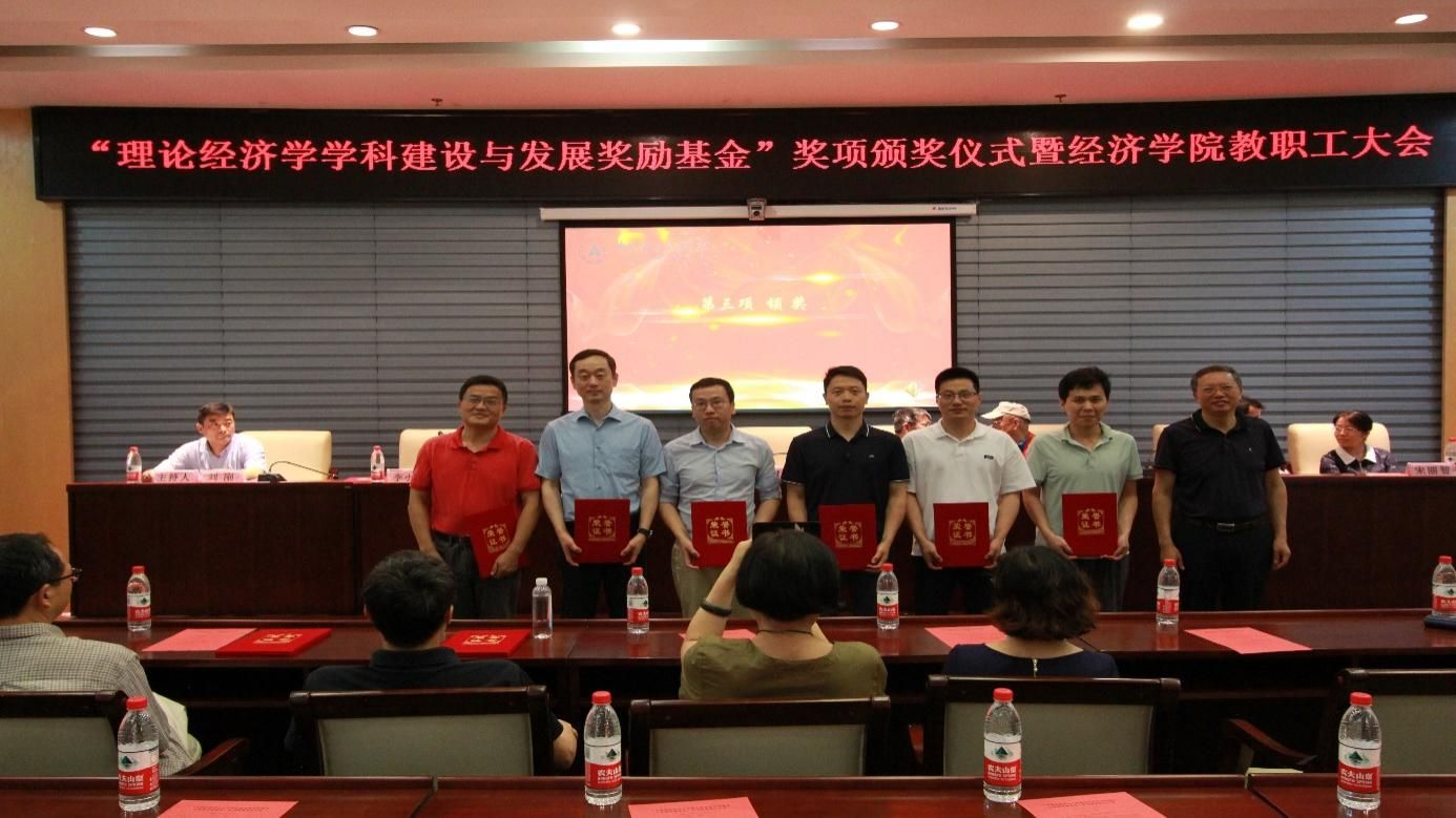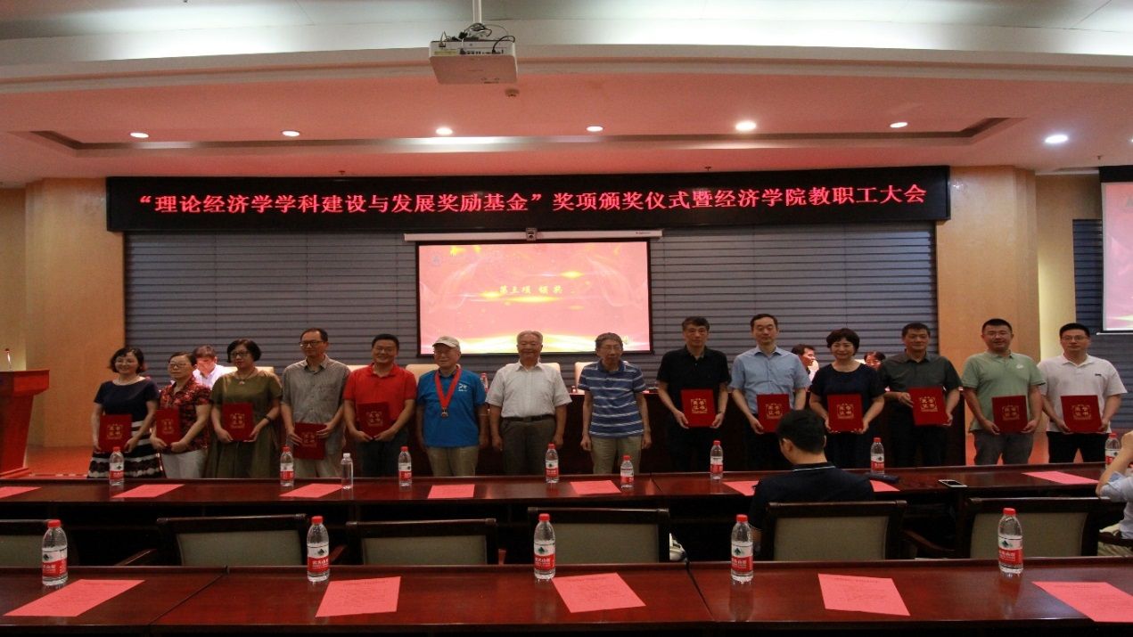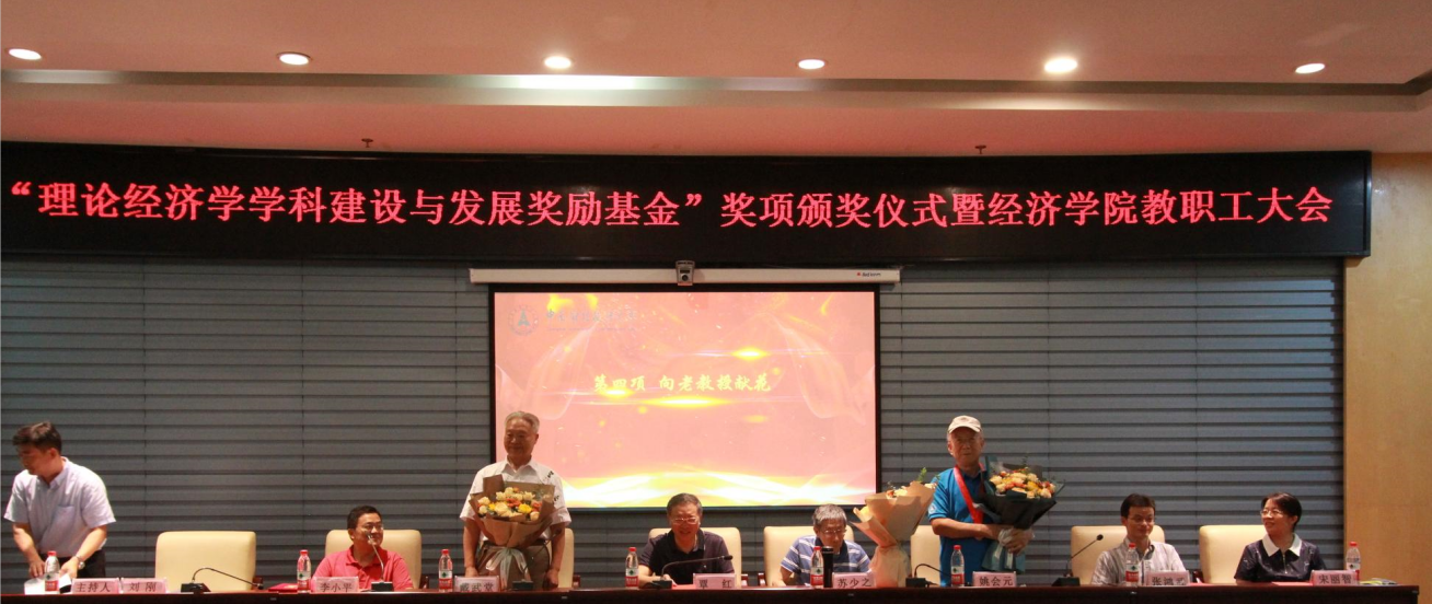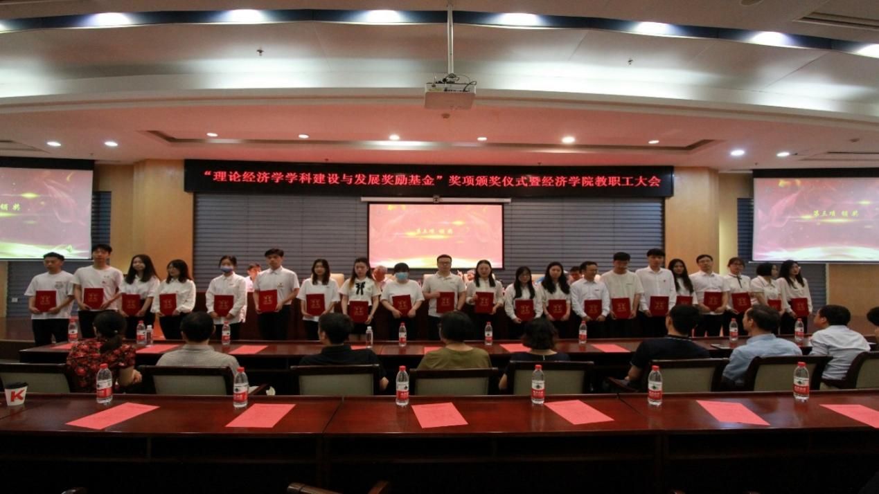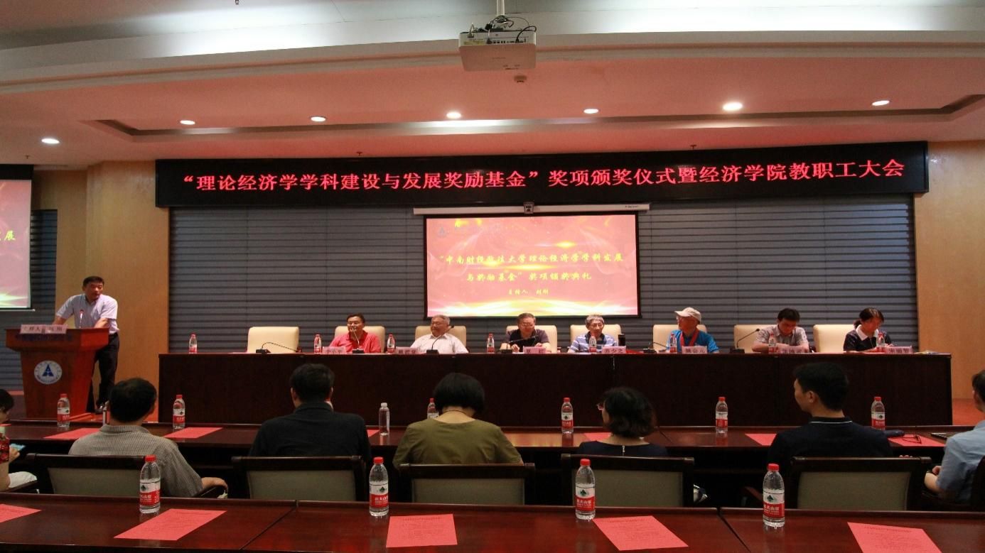 6月30日上午,经济学院于中原楼七楼会议室隆重举行“中南财经政法大学理论经济学学科建设与发展奖励基金”奖项的颁奖典礼。校党委常委、副校长覃红,经济学院院长李小平,院党委书记刘刚,副院长张鸿武、宋丽智,院党委副书记俞凡,经济学院退休教授戴武堂、苏少之、姚会元以及经济学院全体教职工和获奖学生代表出席了本次典礼,典礼由刘刚主持。