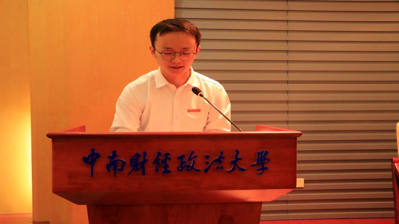 2021级博士生柯佳明代表获奖学生发言。他代表全体获奖同学由衷感谢校友们的慷慨捐赠和学校、学院领导及老师们的悉心培养。谈及数字经济时代与“一带一路”建设,柯佳明指出理论经济学学子应注重理论与实践相结合、关注国内外经济发展动态,为解决中国经济面临的实际问题而不懈奋斗。