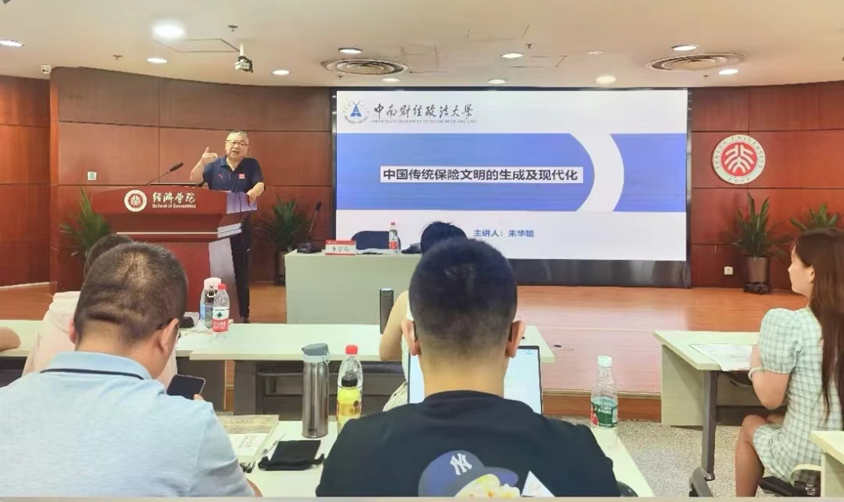 8月22日下午,朱华雄教授做题为“中国传统保险文明的生成及现代化”的主题演讲。朱教授首先通过界定“保险”一词,指出保险不仅指商业保险,且具保障涵义。在此基础上,朱教授分别讲解了中国古代保险文明的生成及演变、近代中国保险文明的现代化、中国共产党早期的保险思想与实践(1921—1949)。最后,朱教授分享了自己多年积累的研究经验。