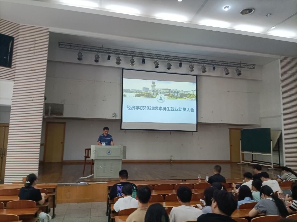 为帮助2024届毕业生了解就业形势、抓住就业机遇、增强就业意识、树立正确的就业观与择业观,97日下午,经济学院于文澜楼111室举行了2024届本科毕业生就业动员大会。就业指导服务中心副主任詹万明、经济学院党委副书记俞凡、经济学院学办主任周琼、2020级本科生辅导员孟庆红、沈鹏飞以及2024届全体本科生参加本次大会,大会由孟庆红老师主持。