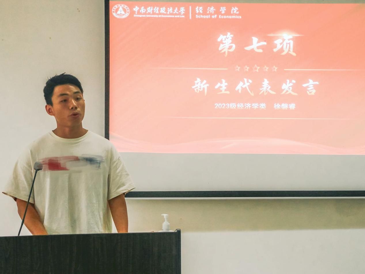 学生代表发言环节中,老生代表毛一帆结合自己的学习经验和求学之路进行分享,并针对自己的学习成果和心路历程发表感悟,极大鼓舞了与会新生。新生代表徐磐睿在发言中表示,经济学院是他追求梦想的舞台,他将努力学习,不辜负学院的殷切期望。