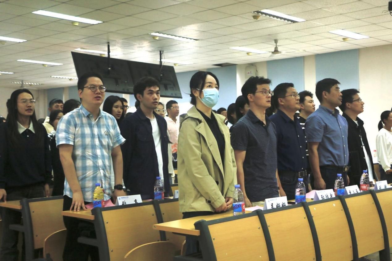 典礼最后,全体师生起立并奏唱校歌,歌颂从战火中走来,一路昂扬发展的红色中南大、文明中南大、奋进中南大。