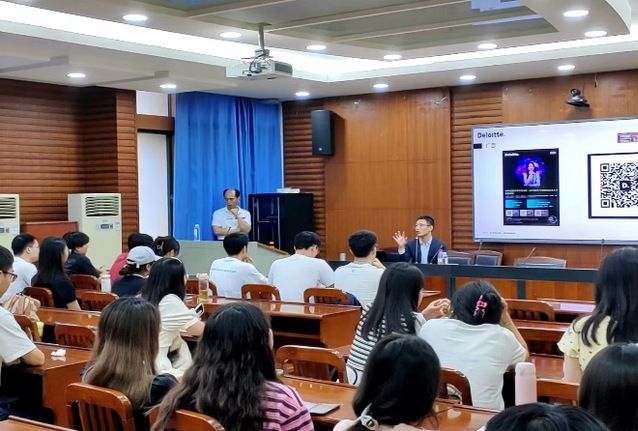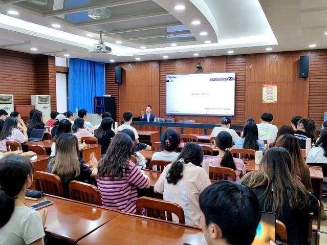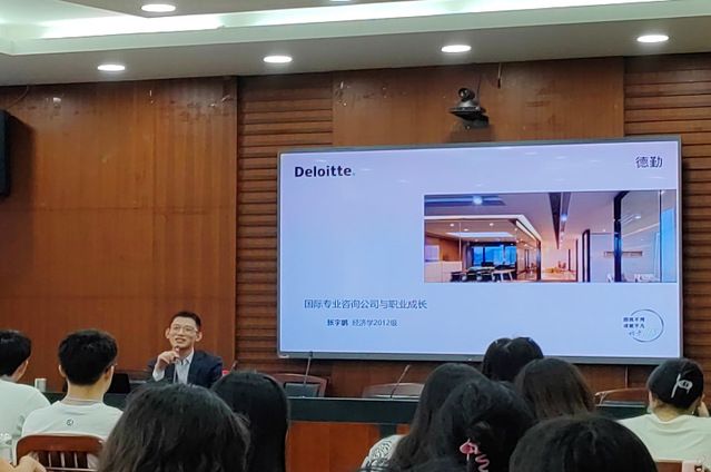 活动伊始,经济学院党委俞凡副书记对张宇鹏师兄做简短介绍,并对其返院参加分享会表示热烈欢迎。张宇鹏师兄2016年毕业于经济学院经济学专业,现任德勤中国公司技术部经理、可持续发展报告卓越中心专家,是中国注册会计师执业会员、香港会计师公会会员、中国注册会计师协会专家组成员、中国证监会深圳监管局外部会计专家、广东省注册会计师协会青年高端人才,持有中国国家法律职业资格。他在审计与鉴证、风险咨询和税务咨询等业务领域有丰富经验,具备综合性多领域的企业服务经验,能够有效提供会计、税法和内部控制整合方案。