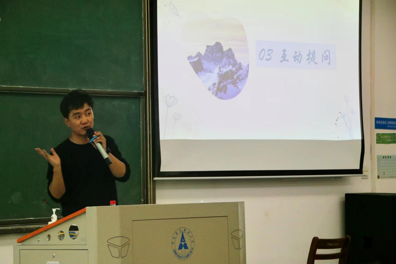 李金龙老师从“何系统深度准备面试和探索自我”与“求职资料与面试准备”两个角度为到场学生介绍了有关职业选择、企业招聘流程、面试准备以及个人简历的撰写等多方面的知识。他以个人经历为例,深度剖析了优秀简历的重点内容和逻辑形式;以过来人的经验,强调了对面试技巧的运用,从而突出个人的优势和能力,增加获得心仪岗位的机会。李老师表示,“知己知彼,自身是千里马,不怕遇不到伯乐”,鼓励同学们多参与相关比赛,培养良好心态和抗压能力,灵活应对各种面试问题。