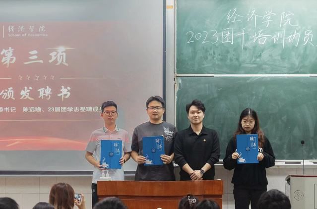 致辞结束,陈远瞻为上一届团学主要负责人代表颁发聘书,激励新成员们以他们为榜样,不断提升自身技能,做好团学工作。