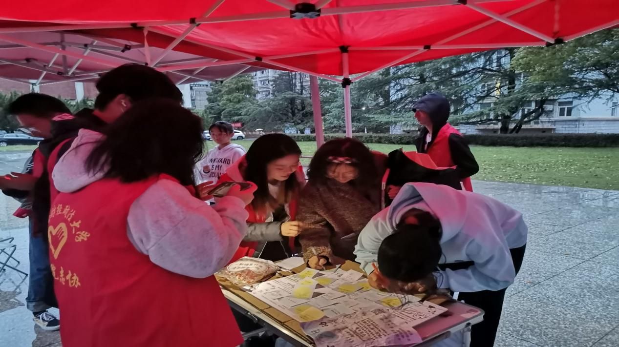 活动开始前,武汉的天空布满乌云,狂风暴雨,但志愿者们并不退缩,而是抓紧布置摊点,按照计划开展此次志愿活动。阴雨暴起,挡不住志愿者们向同学们介绍反诈知识的身影;天气微冷,凉不透志愿者们向同学们介绍反诈知识的一腔热心。他们一手撑伞,一手拿宣传单,为路过的同学介绍本次活动,并传播反诈知识。受天气影响,本次志愿活动并不如想象的那样顺利,但志愿者们灵活应对,及时解决突发问题,使得本次活动可以正常进行下去。