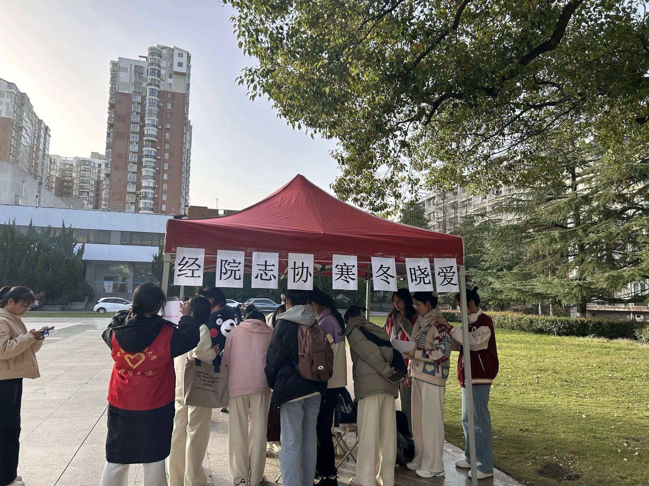 枫丹柿红,露寒霜重,十一月的风里,已经有了寒凉的音符,初冬悄然来临。在这个时节里,经院志协“寒冬晓爱”活动如期举行并圆满结束。活动中同学们踊跃参与,志愿者热情周到,蒙眼作画、猜字谜、暖心寄语等活动让同学们在欢乐中缓解压力,一双双橡胶手套也让校园里的清洁工人感受到了志愿者的温暖,浅冬生寒意,微光暖人心。